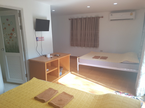 - ในห้องมีผ้าห่ม 2 ผืน ห่มผืนละ 2 คน (หนาวขอผ้าห่มเพิ่มฟรี) ผ้าเช็ดตัว 4 ผืน น้ำดื่ม 4 ขวดในตู้เย็นทานฟรีค่ะ